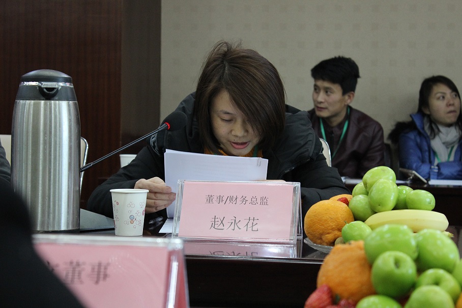 (圖為董事兼財務總監(jiān)趙永花作財務工作報告)