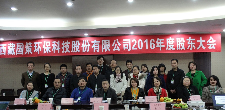 西藏國策環(huán)??萍脊煞萦邢薰?016年度股東大會于2月9日在成都召開,股東大會由董事會秘書楊偉強主持。董事長兼總經(jīng)理陳鴻、副董事長范津濤、副總經(jīng)理幸川、財務總監(jiān)趙永花、證券部經(jīng)理張麗、監(jiān)事會主席蘇昌軍等公司董事、監(jiān)事及核心成員出席本次會議。