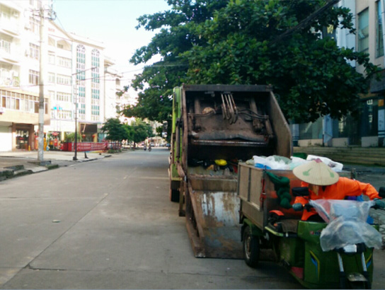針對(duì)東興市國門城市的特點(diǎn),公司采用機(jī)械作業(yè)與人工作業(yè)相結(jié)合的模式。人工作業(yè)方面,城區(qū)每天早上8點(diǎn)鐘前,環(huán)衛(wèi)工人完成大掃,輪班保潔,直到晚上11點(diǎn)鐘。機(jī)械作業(yè)方面,公司采用高壓清洗車對(duì)東興市城西區(qū)域路段進(jìn)行清洗作業(yè),采用小掃路車對(duì)市區(qū)小街巷進(jìn)行清洗作業(yè),全天候人工與電動(dòng)三輪車巡回保潔,管理人員用電瓶車進(jìn)行巡檢督查。垃圾清運(yùn)則采用壓縮式收集車巡回收集城區(qū)各路段垃圾,采用5臺(tái)勾臂車對(duì)城西各區(qū)域100多個(gè)垃圾箱中垃圾進(jìn)行轉(zhuǎn)運(yùn),垃圾壓縮車對(duì)全城的垃圾桶中垃圾進(jìn)行循環(huán)收集,保證全城垃圾不落地。新型模式下的環(huán)衛(wèi)作業(yè)有效地提升了東興市國門城市形象及環(huán)衛(wèi)作業(yè)管理水平,受到業(yè)主單位及主管單位好評(píng)。