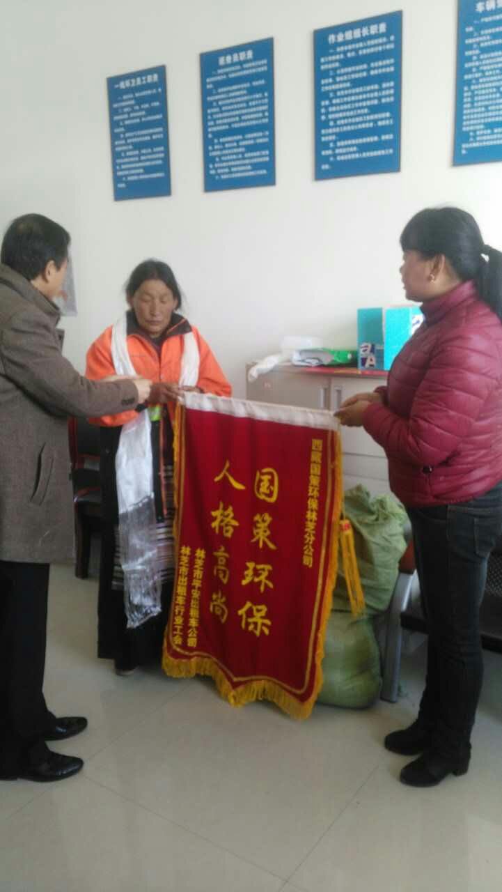 2017年3月27日,我公司環(huán)衛(wèi)工人在工作期間拾到某出租公司重要資料,及時與出租車公司取得聯(lián)系并歸還。該出租車公司領導為表達謝意,專程為我公司送來錦旗一面,并親自為這名環(huán)衛(wèi)工人獻上哈達和現金1000元作為感謝;同時對我公司這位環(huán)衛(wèi)工人拾金不昧的精神和我公司的管理方式贊不絕口。