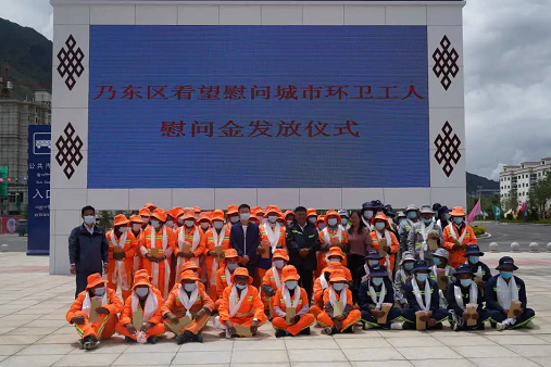 索朗平措向國策環(huán)保山南分公司一線環(huán)衛(wèi)工人們獻(xiàn)上了潔白的哈達(dá),送上了慰問金,同時對他們在每一天、每一個佳節(jié)的辛勤付出表示衷心感謝!他表示,希望大家繼續(xù)發(fā)揚(yáng)“寧可一人臟、換來萬人潔”的環(huán)衛(wèi)精神,再接再厲,以更加優(yōu)美整潔的城市環(huán)境和優(yōu)異的工作業(yè)績回報(bào)社會各界的關(guān)心和厚愛。