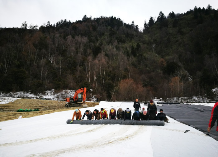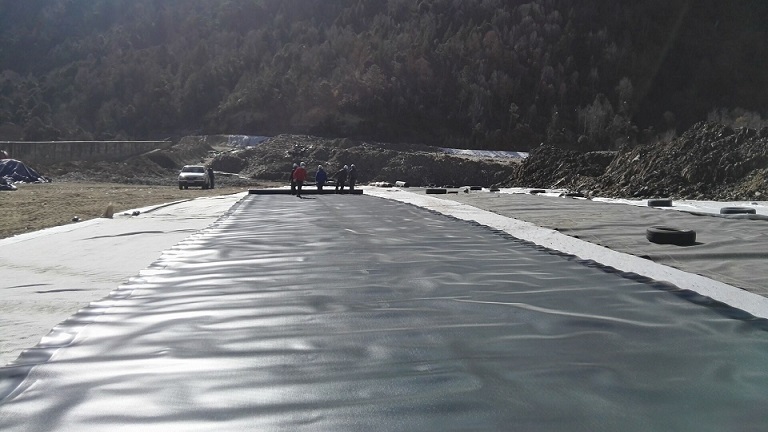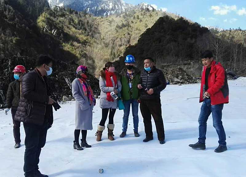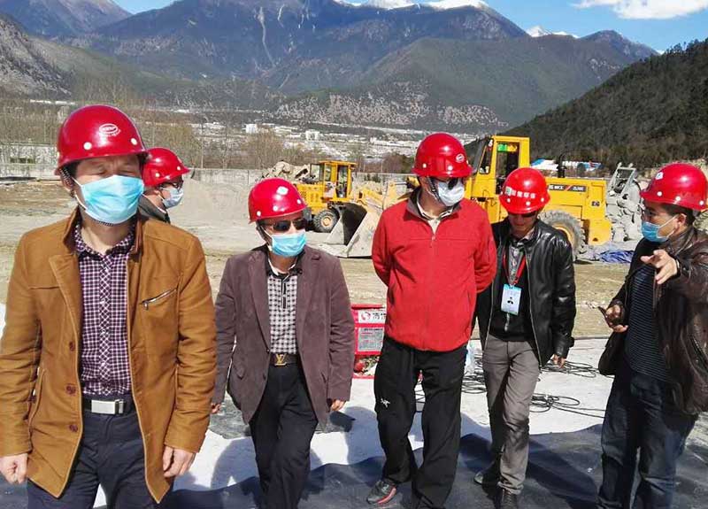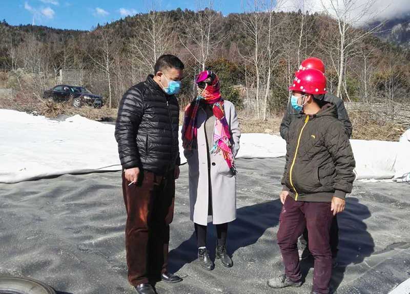 林芝市市政局副局長(zhǎng)亞宏來(lái)工地查看土工膜鋪設(shè)焊接
