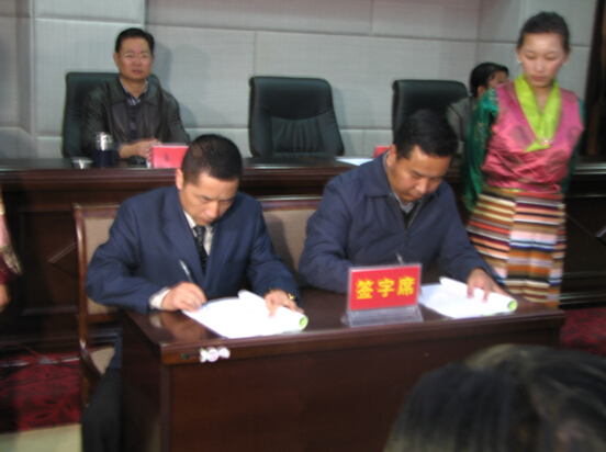 (圖為陳鴻代表和桑珠次仁代表交接儀式簽字)