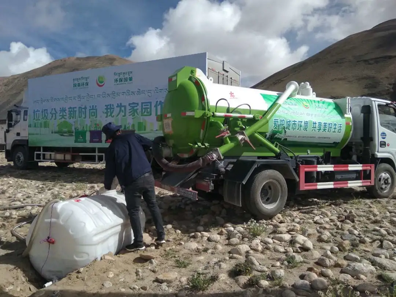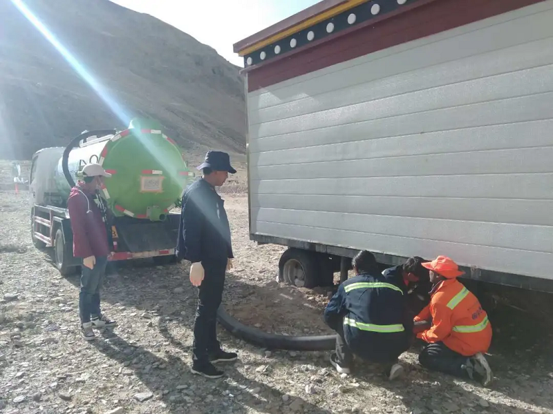 每隔一段時間,國策環(huán)保相關工作人員便會定期對這16個公廁的排泄物進行清理,能原地處理的便用吸污車進行現(xiàn)場處理,達到排放標準后排放到附近河里,不能現(xiàn)場進行處理的則會將其運送到定日縣垃圾填埋場進行填埋處理。