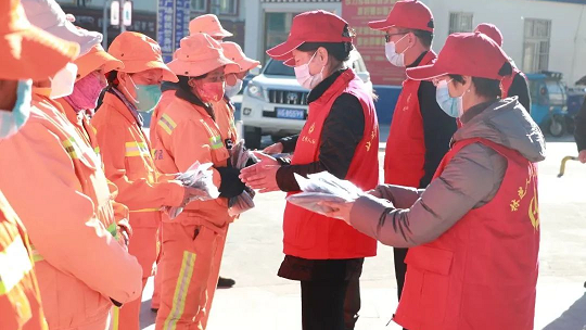 活動(dòng)中,林芝市人社局黨組副書(shū)記、局長(zhǎng)李培靈同志及黨員干部們?yōu)閲?guó)策環(huán)保林芝分公司一線環(huán)衛(wèi)工人送來(lái)了絨手套、棉圍脖、保暖帽等物資60套。